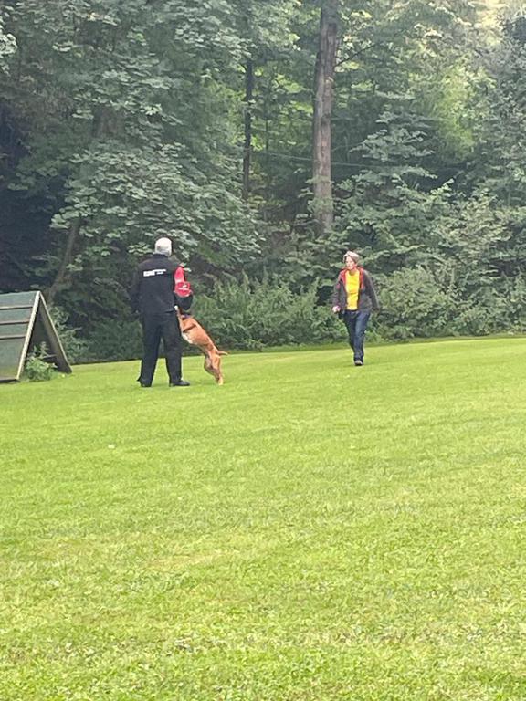 Auf dem Platz folgten dann die Unterodnungen in den Leistungstufen IGP, BH, IBGH I und IBGH III. Leistungsrichter Oliver Steinbring bewertete die Teams sehr fair und zugewandt. Auch der Staßenteil, bei dem die Hunde Ihre Unbefangenheit gegenüber Alltagssituationen zeigen, stellte für die zwei Begleithundeteams kein Problem dar. Einen sehr guten Schutzdienst absolvierten unsere Gäste aus der Holledau in der Prüfungsstufe IGP II.