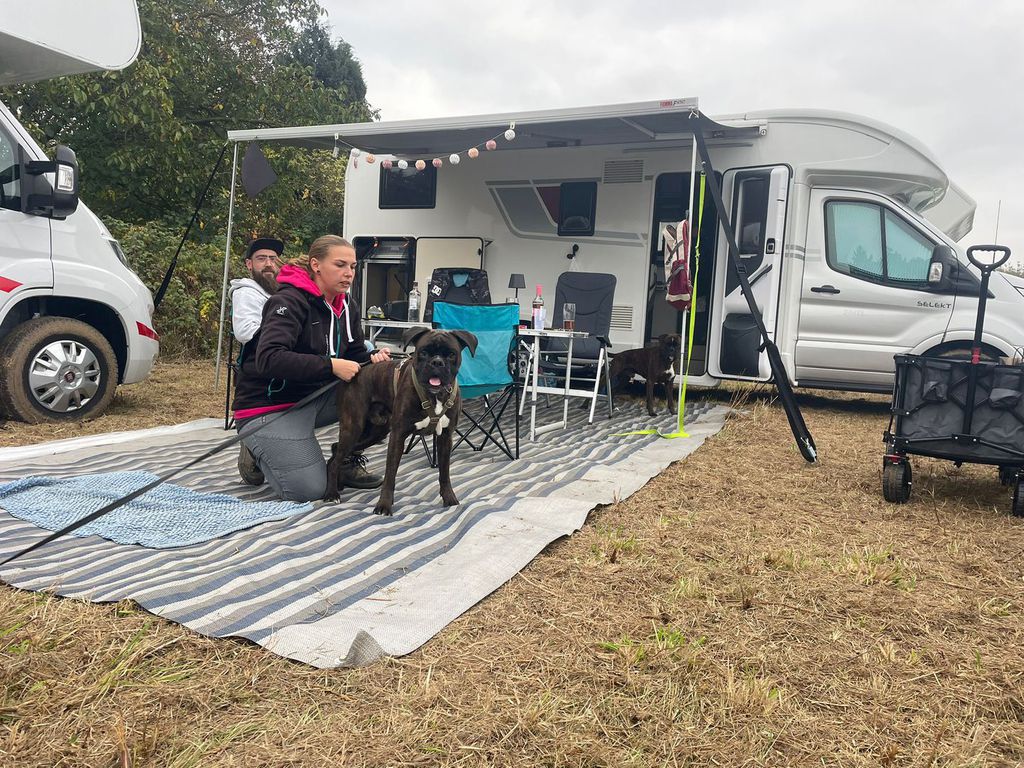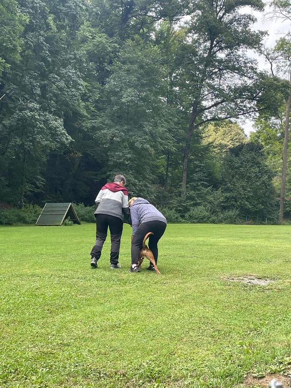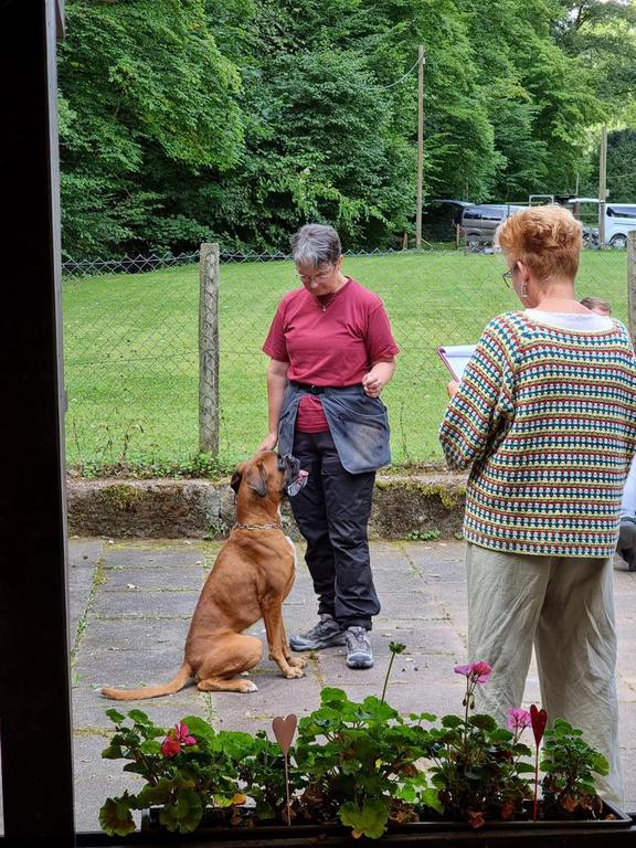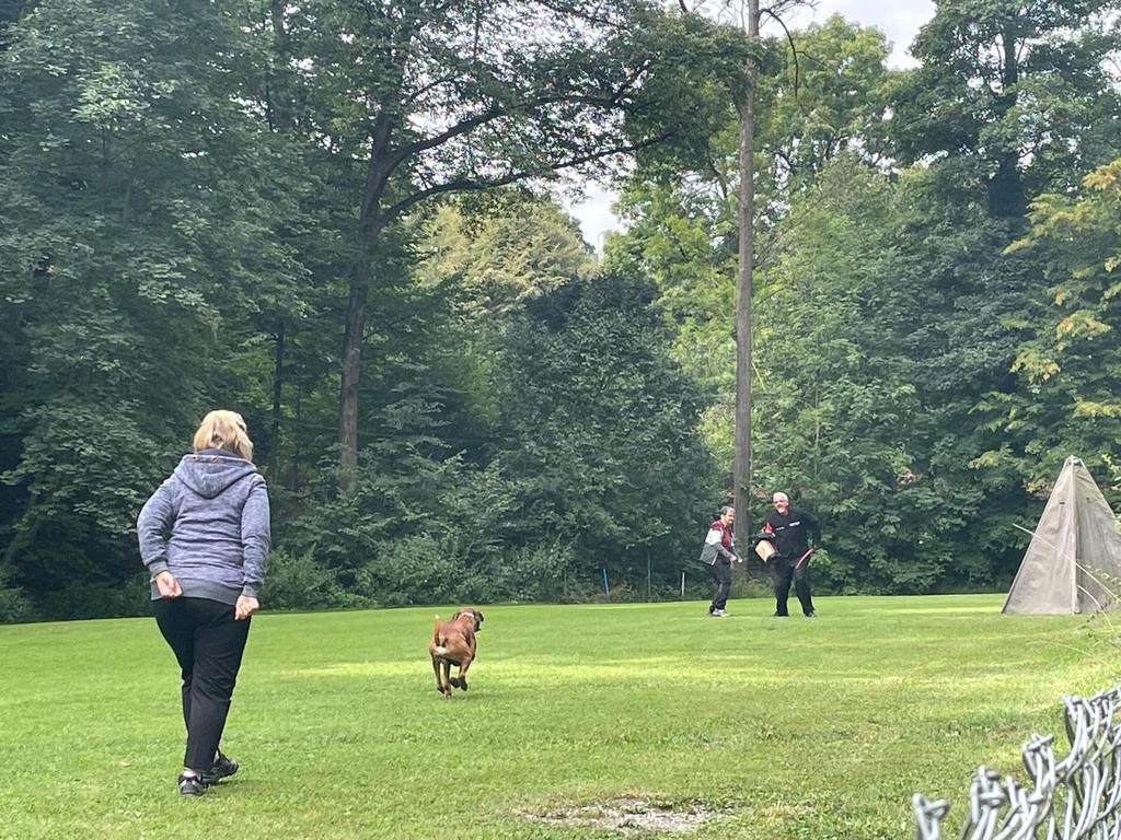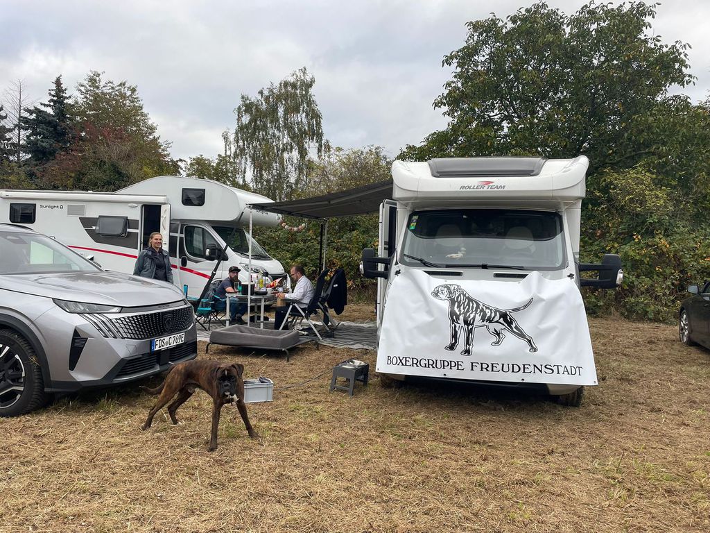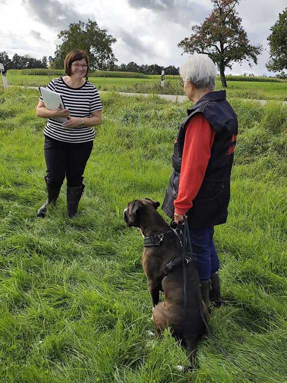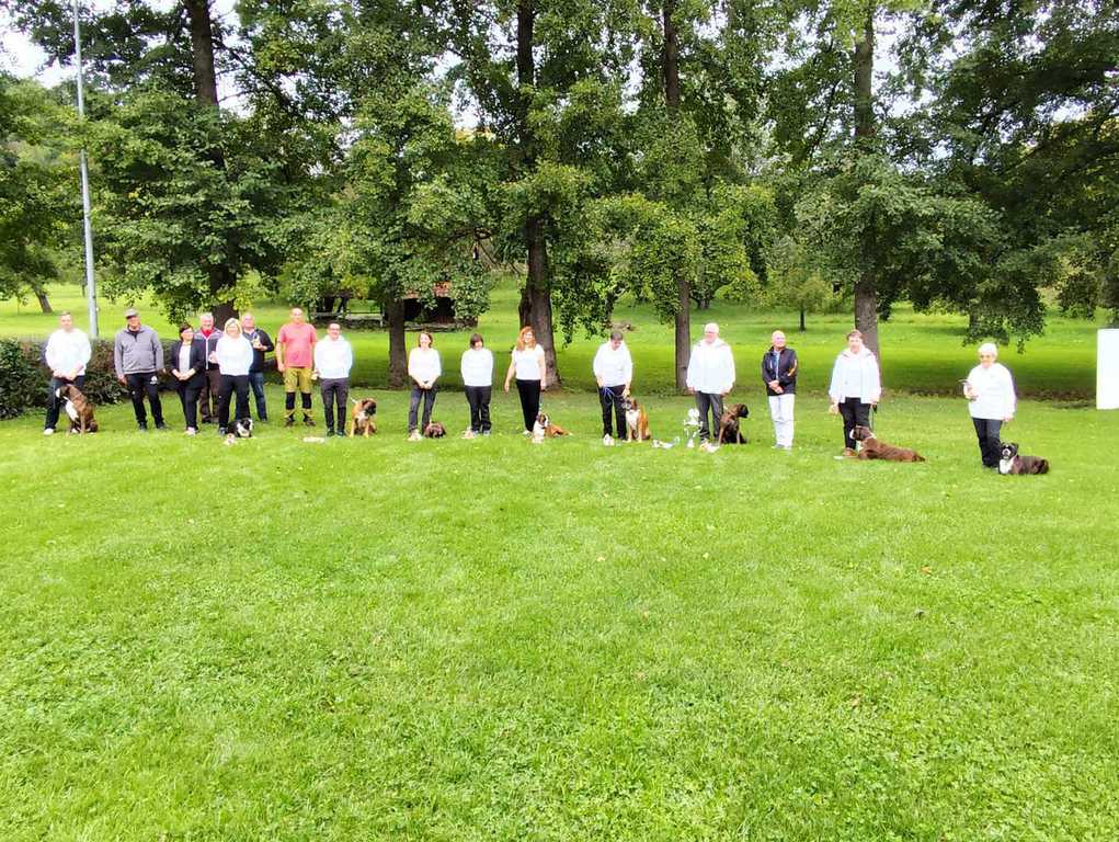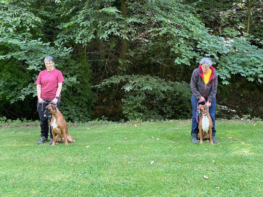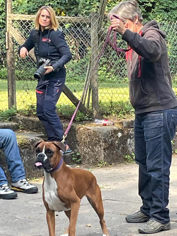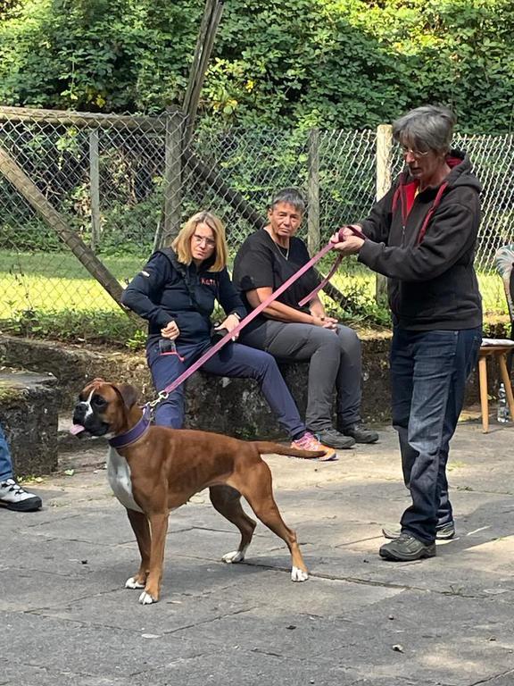 Bei bestem Boxerwetter, kühl und bedeckt, konnten unsere Mitglieder Sandra Häberle und Franziska Kieninger am 23. August ihre jungen Boxer zur ZTP in der Gruppe Stuttgart vorstellen. Hier werden die Wesenseigenschaften und der Formwert unserer Boxer unter Beweis gestellt. Nur wer dem Standart der Zuchtvorgaben des Hauptverbandes Boxerklub München entspricht, erhält das Prädikat und darf zur Zucht eingesetzt werden. Die Aufgabe alle Hunde zu bewerten lag bei Körmeisterin Beate Jodl, die mit Ihrer sachkundigen, langjährigen Erfahrung entschied. Sowohl Ewok von Liliencron als auch Cantara von Taqaich haben mit Bravour bestanden. Patrick Fässy als Schutzdiensthelfer und Hannelore Teufel als Zuchtwartin standen den Teilnehmern zur Seite. Ein herzliches Dankeschön auch an das Küchenteam, Tanja und Helga, und allen Helfern im Hintergrund. Wir Vereinskameraden, die auch bei der Vorbereitung für Ewok tatkräftig unterstützt haben, kamen aus Freudenstadt angereist. Denn das schweißt uns zusammen, Freundschaft und die Liebe zu unseren Boxern, den besten Hunden der Welt!