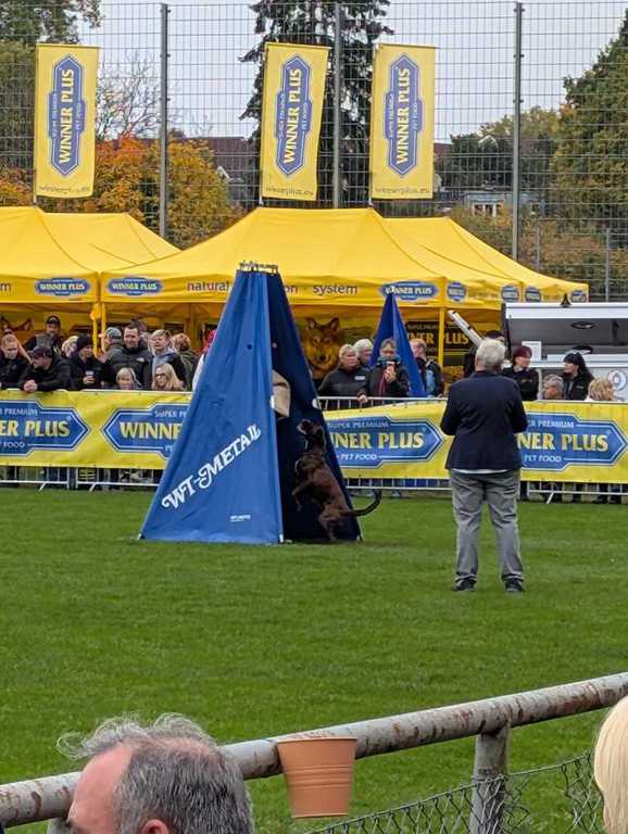 Am Samstagmorgen ging es früh ins Stadion, wo die Gruppe mit großer Begeisterung die Vorführungen in Abteilung B (Unterordnung) und Abteilung C (Schutzdienst) verfolgte. Alle Teilnehmenden wurden von außen kräftig unterstützt – ganz besonders natürlich die Starterinnen und Starter aus unserer Landesgruppe Baden-Württemberg. Die Ergebnisse der Abteilung A (Fährtenarbeit) waren online stets aktuell abrufbar – ein großes Lob an die technische Umsetzung!